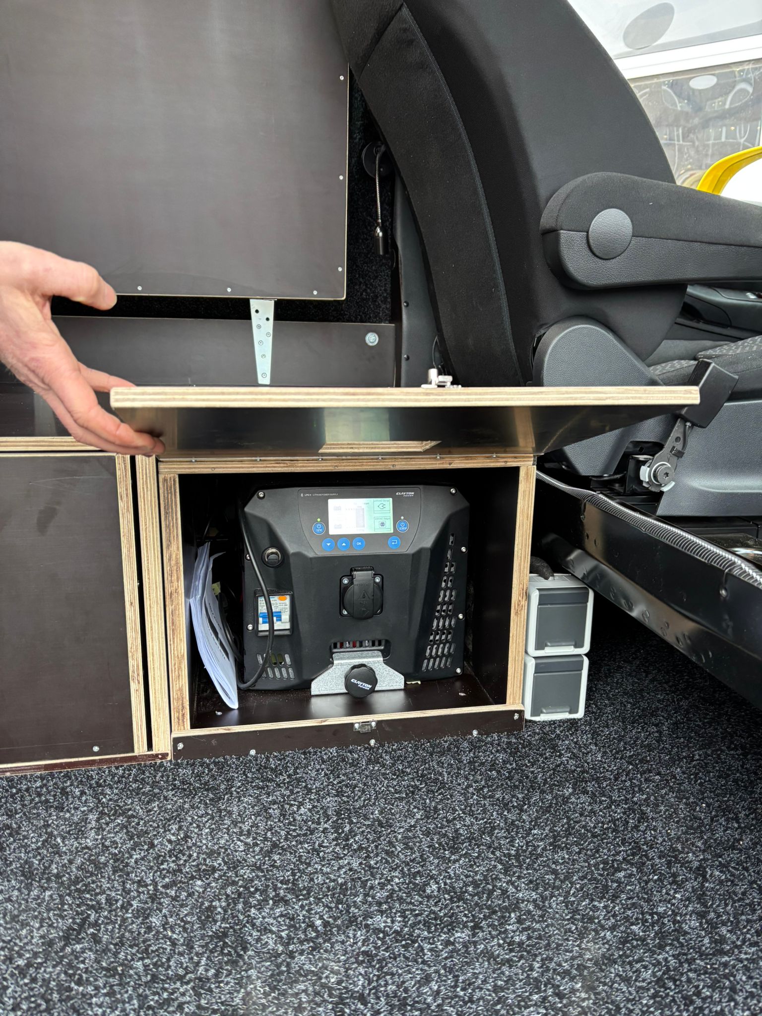 Naast het interieur is ook de elektrische installatie volledig verzorgd. In de bus is een Clayton LPS omvormer geplaatst waarop verschillende onderdelen zijn aangesloten, waaronder grillflitsers, convoi-flitsers, LED-verlichting, een dakset, wandcontactdozen en een verlengsnoer.